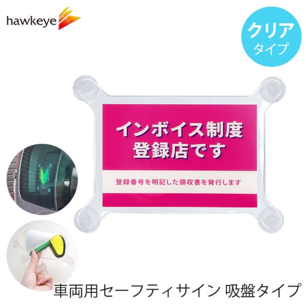 【吸盤 クリア インボイス ピンク】セーフティサイン 吸盤タイプ インボイス制度 登録店 ピンク 1枚
