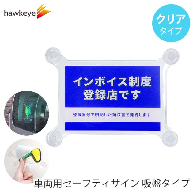 【吸盤 クリア インボイス ブルー】セーフティサイン 吸盤タイプ インボイス制度 登録店 ブルー 1枚