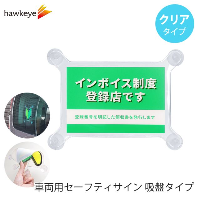 【吸盤 クリア インボイス グリーン】セーフティサイン 吸盤タイプ インボイス制度 登録店 グリーン 1枚