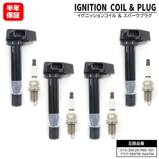 イリジウム スパークプラグ & イグニッションコイル 4セット 30520-P8E-S01 90048-51160 互換品 6ヵ月...