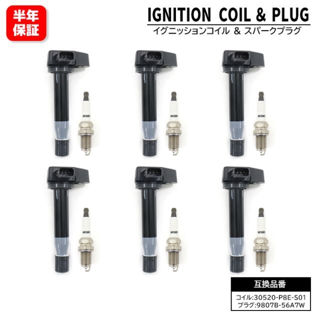 イリジウム スパークプラグ & イグニッションコイル 6セット 30520-P8E-S01 90048-51160 互換品 6ヵ月...