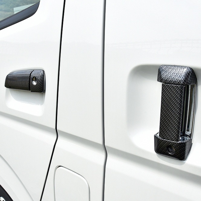 ハイエース 200系 綾織 カーボン調 ドアハンドルカバー 4ドア Ver,2 ABS製 スマートキー 無し車用