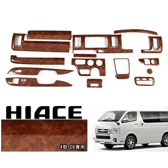 200系ハイエース 4~8型 DX 標準 3D インテリアパネル 茶木目 15P 高品質 内装 カスタムパーツ トヨタ インパネ