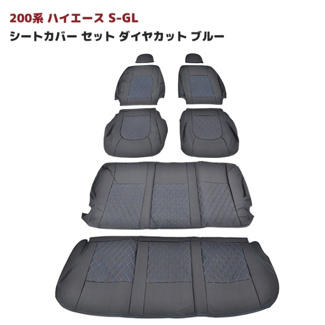 ハイエース 200系 S-GL シートカバー セット ダイヤカット ブルー ステッチ 運転席 助手席 後部座席セット