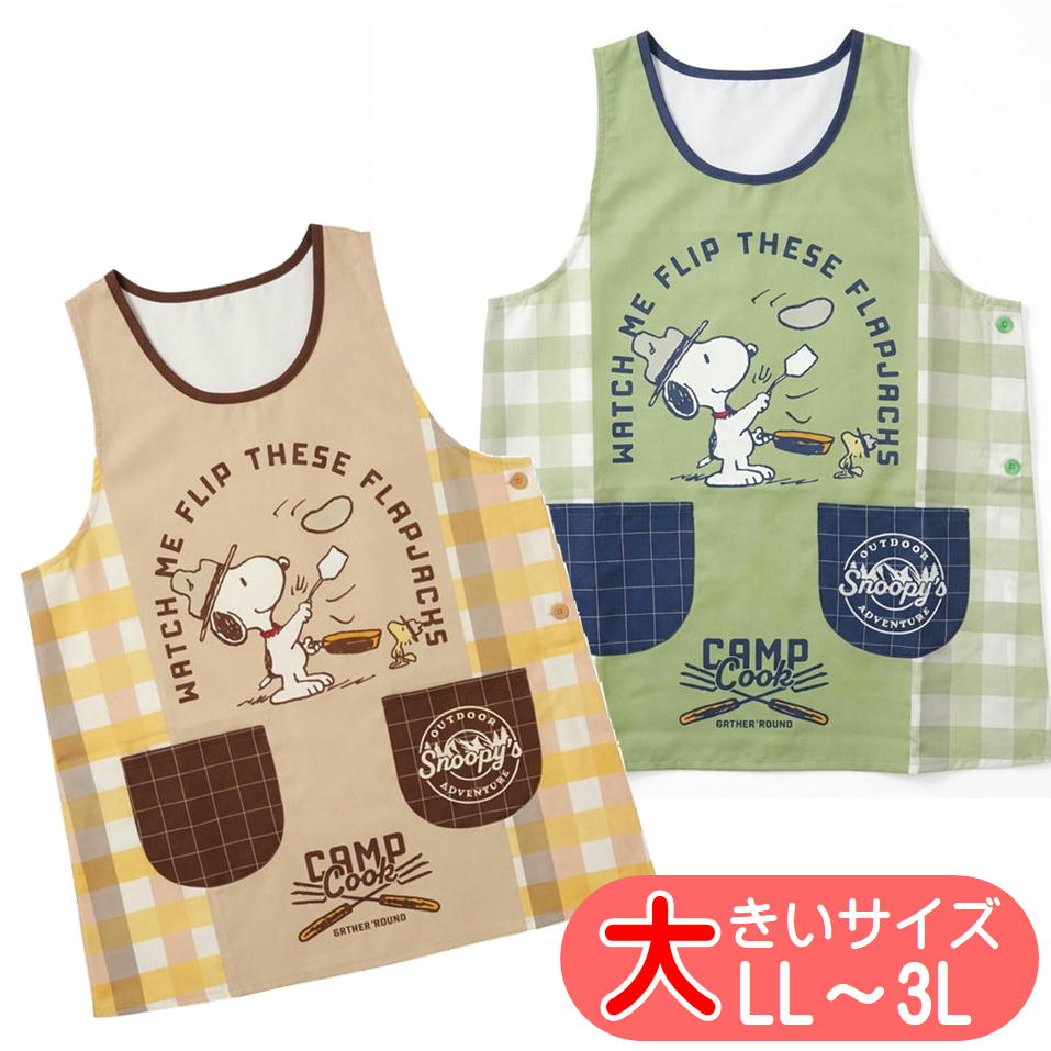 エプロン スヌーピー キャンプクック 大寸 大きいサイズ キャラクター サイドボタン かぶりエプロン LL-3L 保育士 3613...