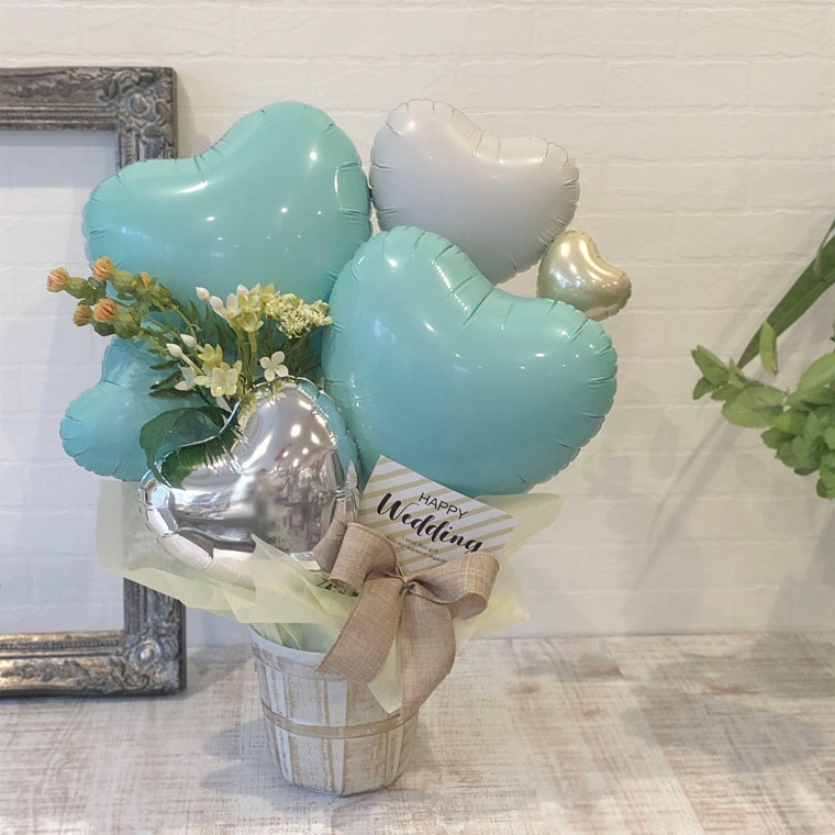 ティファニーブルーとお花でナチュラルでオシャレな雰囲気の置き型バルーンギフト