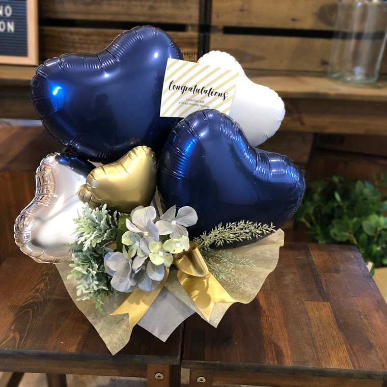 落ち着いた大人カラーの置き型バルーンギフト ゴールドネイビー