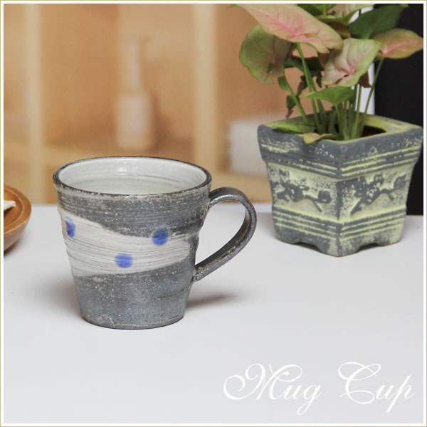 信楽焼マグカップ!天の川(青)マグカップ!コーヒー、カフェオレ、ジュース、スープなどお好みにお使いください。[w904-03]