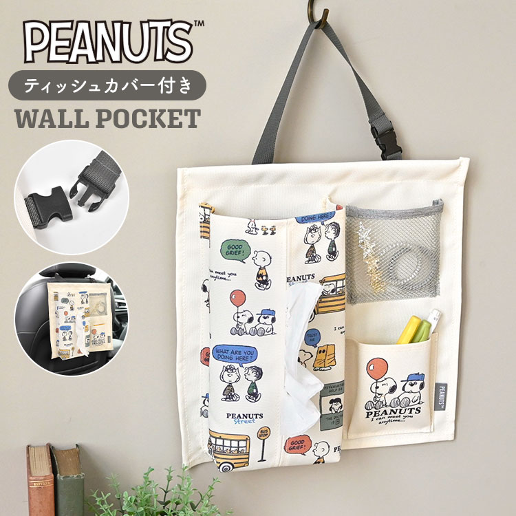 スヌーピー ウォールポケット SNOOPY ティッシュカバー付き 壁掛け収納 吊り下げ収納 小物入れ 壁面収納 車用バックポケット...