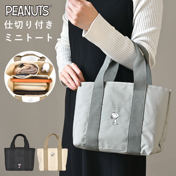 ミニ トートバッグ スヌーピー SNOOPY レディース 仕切りあり 仕切り付き 自立 ペットボトル 縦に入る 収納上手 マチ付き...
