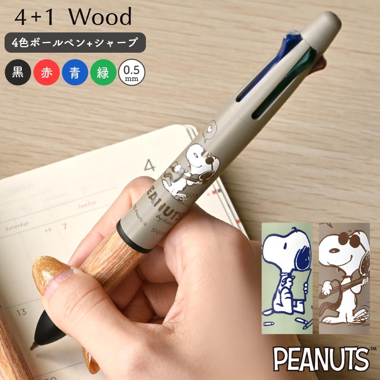 パイロット PILOT 4+1 wood スヌーピー SNOOPY 4色ボールペン 油性 多機能ペン キャラクター シャーペン 0...