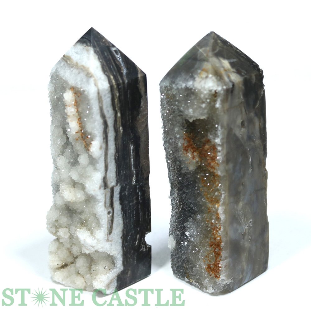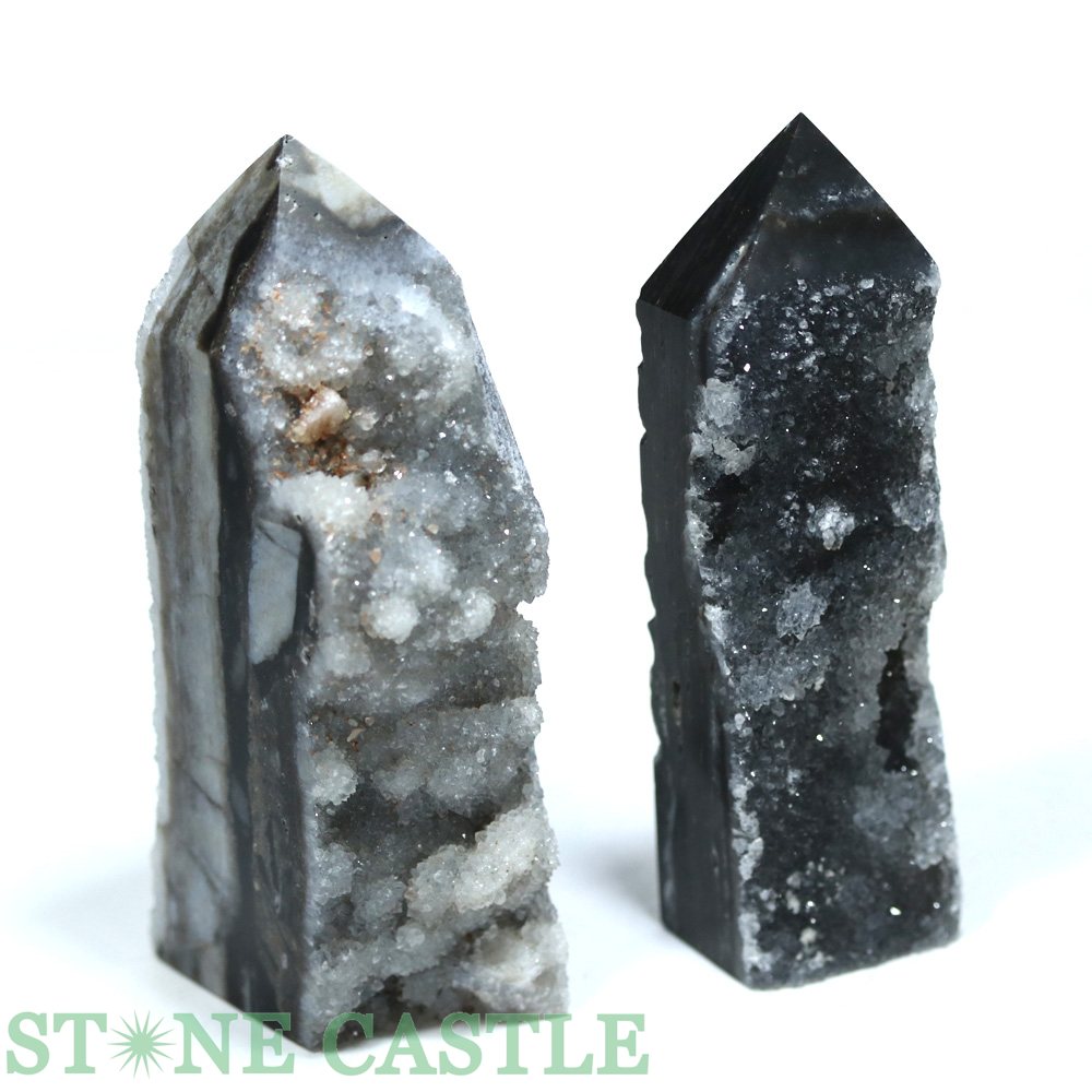 ☆一点物☆【置き石】ポイント型 ドゥルージーブラックサードオニキス 原石 (2本セット) No.01