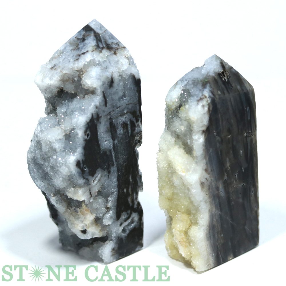 ☆一点物☆【置き石】ポイント型 ドゥルージーブラックサードオニキス 原石 (2本セット) No.02