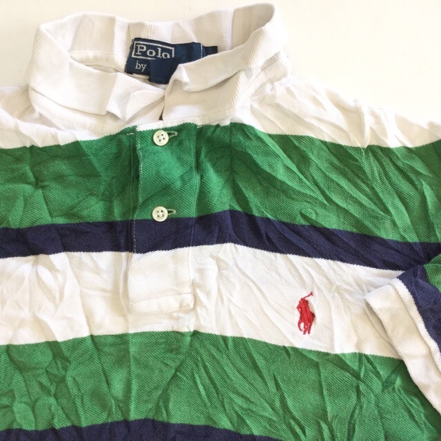 Polo by Ralph Lauren ポロ ラルフローレン ボーダー 半袖ポロシャツ 送料無料 メンズ L/白x緑x紺 太ボー...