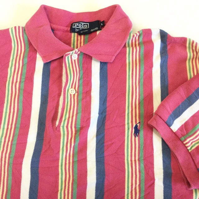 Polo by Ralph Lauren ポロ ラルフローレン ストライプ 半袖ポロシャツ 送料無料 メンズ L/ピンク系xストラ...