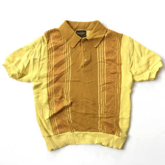 Sears シアーズ ビンテージ アメリカ直輸入 半袖ニット サマーセーター 送料無料 メンズ M/黄色系 ポロシャツ USA ア...