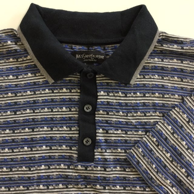 YVES SAINT LAURENT イヴサンローラン 半袖ポロシャツ アメリカ輸入 XL/総柄 ボーダー 送料無料 ブランド ゴ...