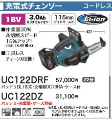 DIY女子も必見[税込新品]マキタ 18V充電式チェンソー UC122DRF バッテリ・充電器・ケース付 チェーンソー【ポイント...