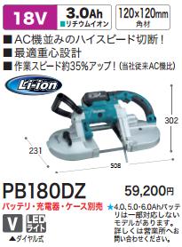 DIY女子も必見[税込新品]マキタ 18V充電式ポータブルバンドソーPB180DZ(バッテリ・充電器・ケース別売) のこぎり/鋸/...