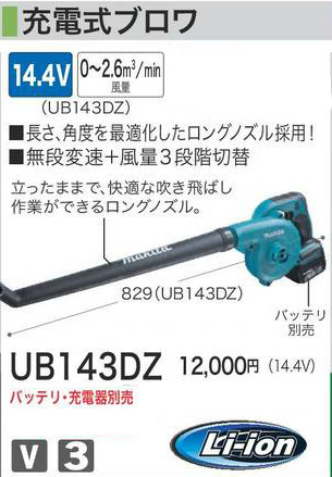 DIY女子も必見[税込新品]マキタ 14.4V充電式ブロワ(バッテリ・充電器別売)UB143DZ ブロワー【ポイント消化にどうぞ】...
