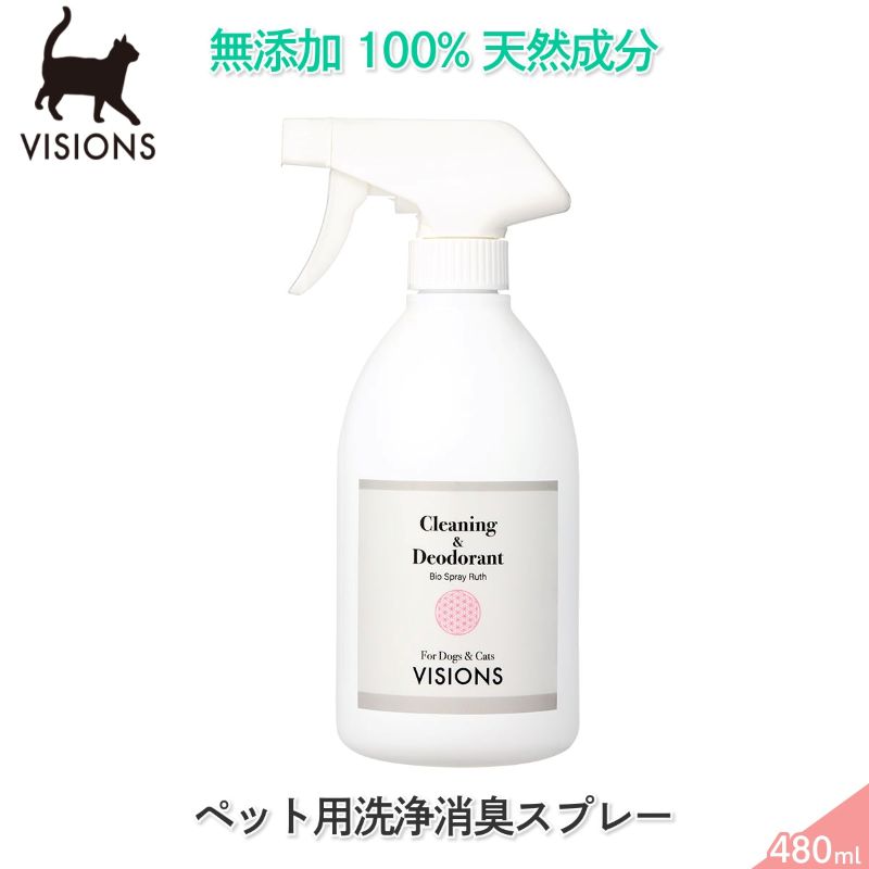 猫用 ペット用洗浄消臭スプレー バイオスプレールース [480ml] 天然成分100% 無添加 国産 VISIONS オリジナル ...