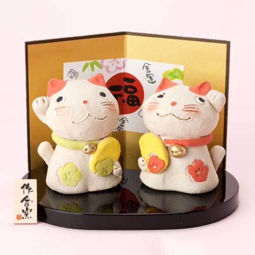 瀬戸焼ひろ陶房 招き猫 招福組猫 (K5242) 愛知県の工芸品 Seto-yaki Lucky cat ※在庫限り