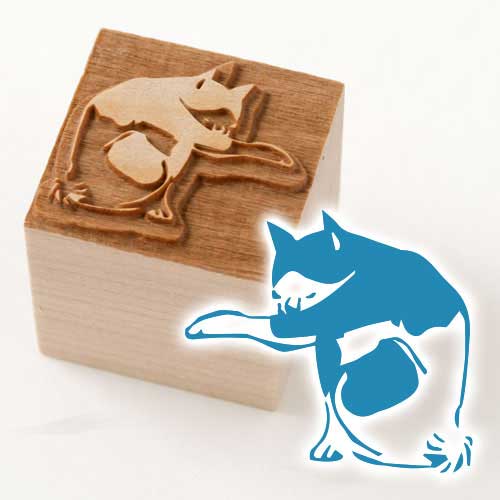 京からかみ 版木スタンプ 猫 木版ミニスタンプ 木製・朴 季節のお便り 年賀状 便箋 手紙 京都府の工芸品