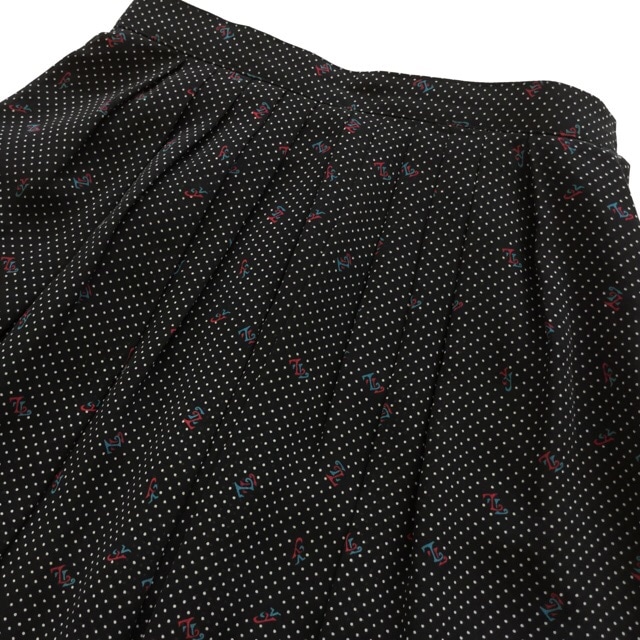 昭和レトロ モダン プリーツスカート シフォン サイズW60/黒 モノグラム ドッド 水玉 ミモレ丈 国内古着 送料無料