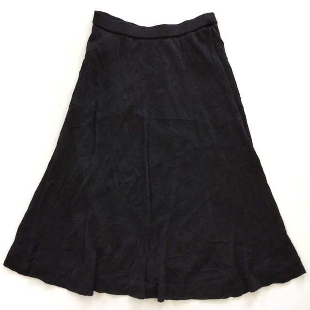 昭和レトロ マーメイド ニットスカート サイズL/黒xラメ ミモレ丈 レディース モダン クラシック 国内古着 送料無料