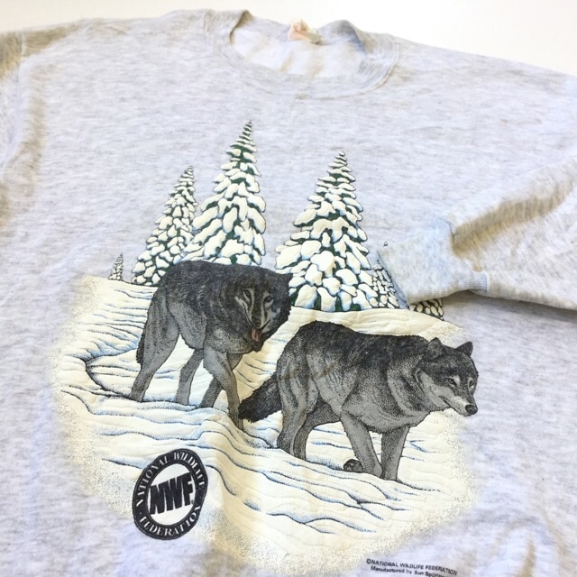 NWF ウルフプリント スウェット アメリカ直輸入 トレーナー 送料無料 メンズ XL/霜降りグレー 雪原 雪山 狼 SUN アメ...