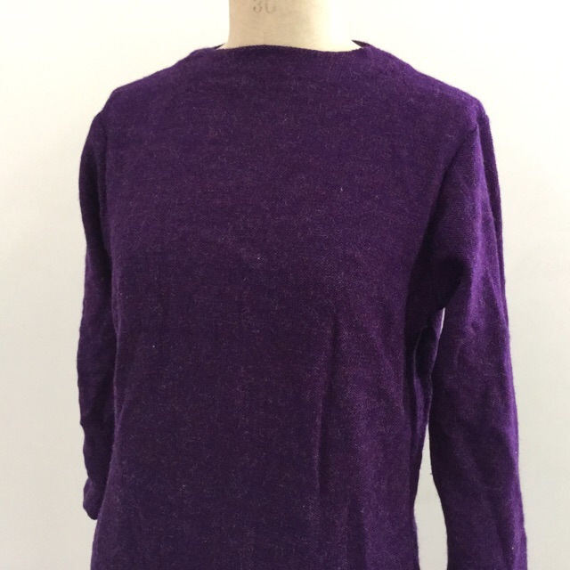 昭和レトロ モダン 長袖ニットワンピース サイズフリー/紫 ドレス iラインワンピース モヘア 送料無料 国内古着