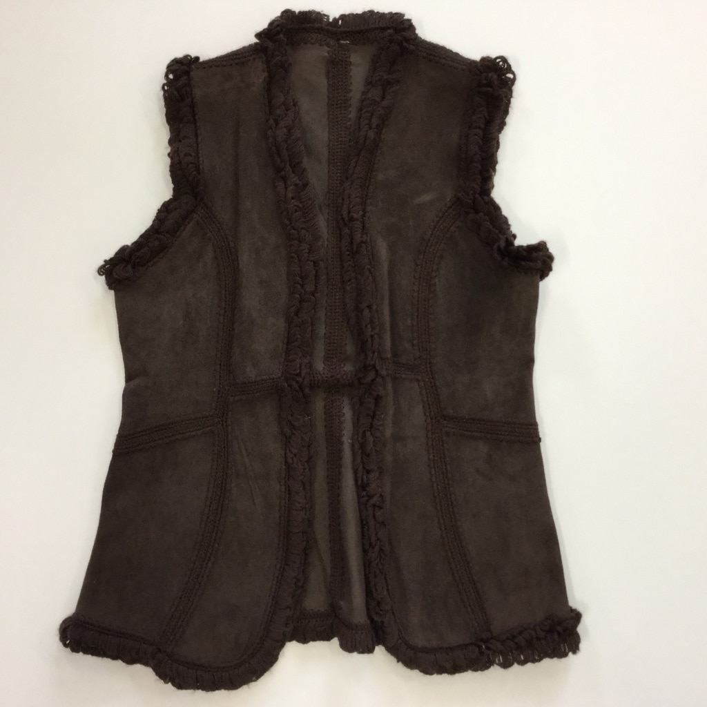 昭和レトロ レザーベスト サイズF/茶 モダン 豚革 フォークロア ヒッピー パッチワーク レディース カジュアル 国内古着 送料...