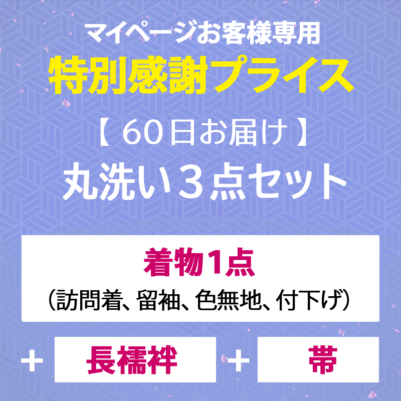 着物丸洗い3点セット(きもの+長じゅばんor帯+長じゅばんor帯)(エコノミーコース) 【60日でお届け】*着物クリーニング