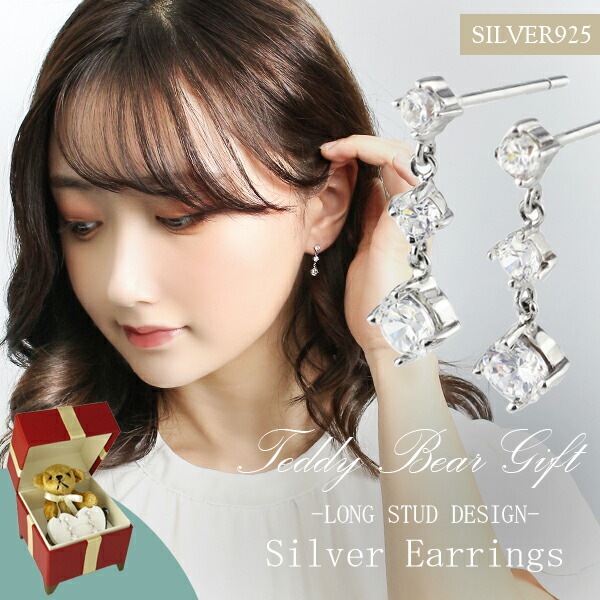 シルバーピアス レディース トリプル ジルコニア 2P 人気 オシャレ かわいい 可愛い ギフトBOX