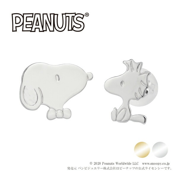 選べる2カラー スヌーピー ウッドストック スタッドピアス 2P 両耳用 公式 オフィシャル K10ゴールド 10金 10k ホワ...