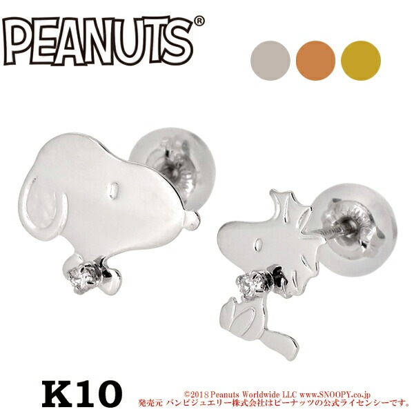 Snoopy スヌーピー ウッドストック ダイヤモンド フェイスプレート K10 3color ピアス 2P K10PG K10W...