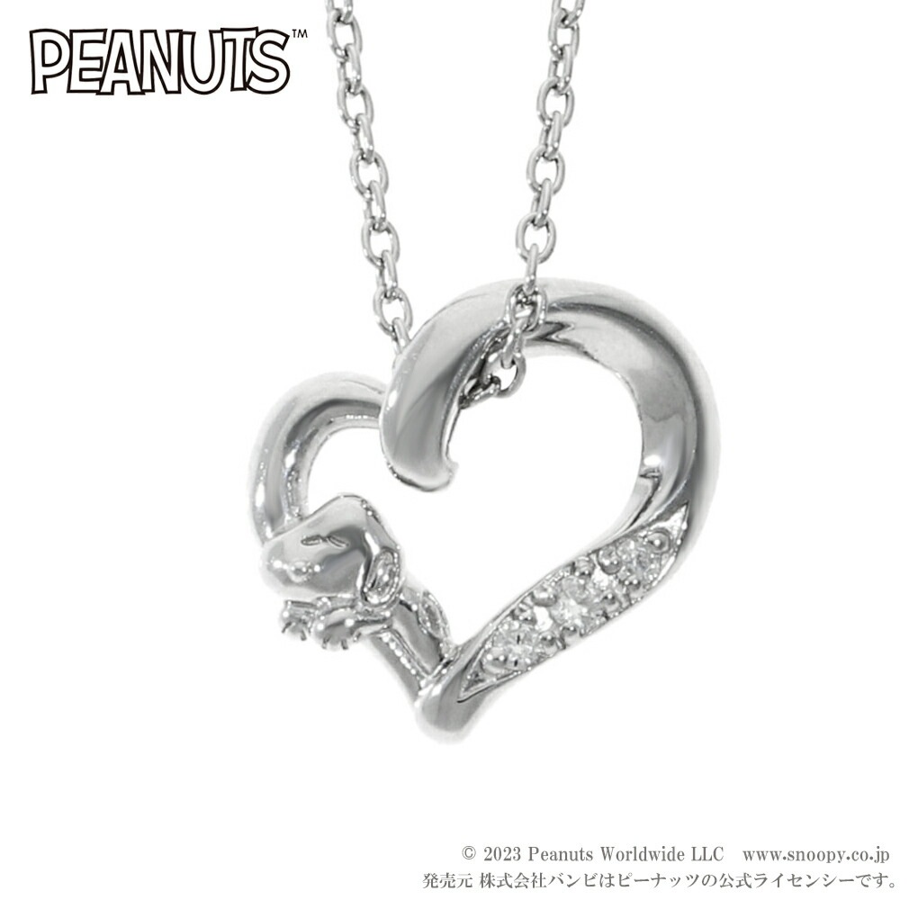 眠る スヌーピー オープンハート ネックレス シルバー925 キュービックジルコニア ハート 公式 PEANUTS グッズ キャラ...