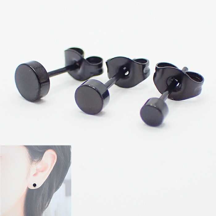 コイン型 スタッドピアス 片耳用 3サイズ ステンレス ピアス 男女兼用 メンズ DIY 国内発送
