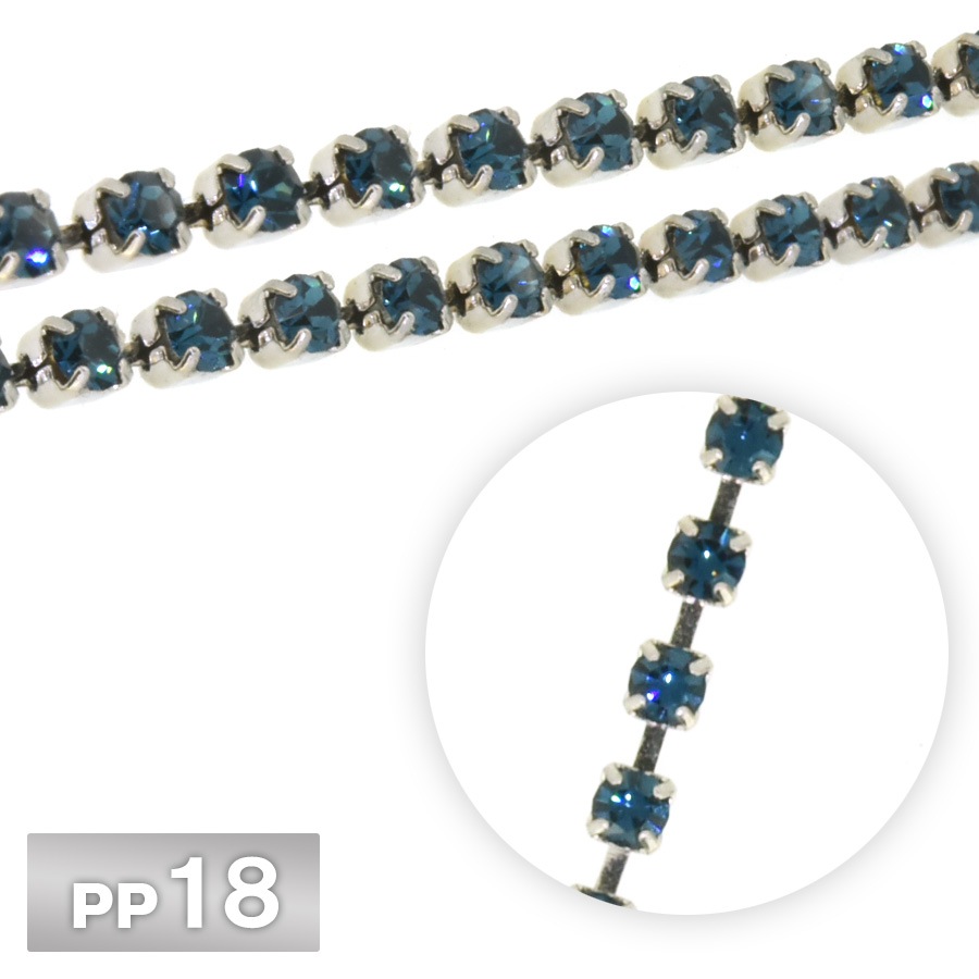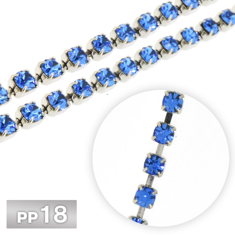ラインストーン チェーン PP18 10cm/1m サファイヤ Rhカラー ロジウム 連爪 デコ ネイル 手芸 パーツ ビジュー