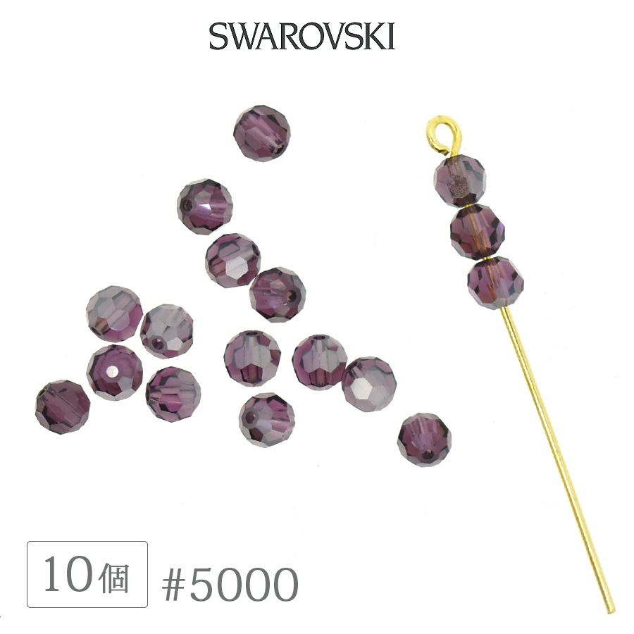 スワロフスキー クリスタル #5000 アメジスト 4mm 10個 SWAROVSKI ラウンド ダイヤカット ガラス ビーズ デ...