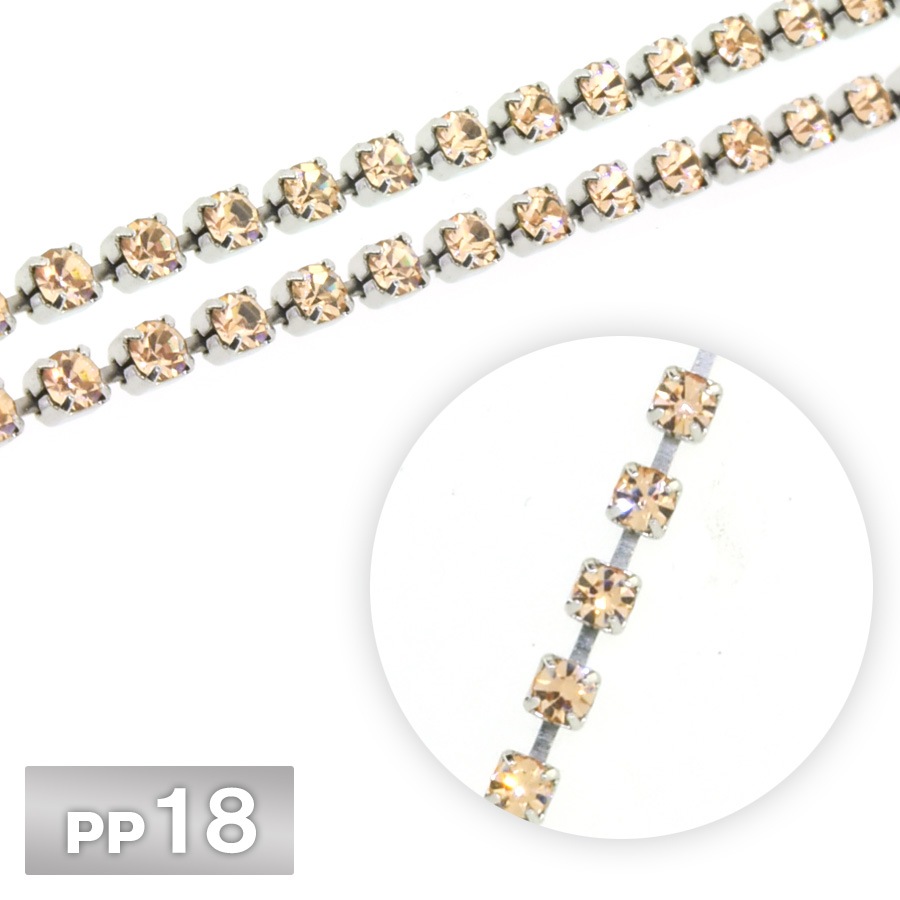 ラインストーン チェーン PP18 10cm/1m ライトピーチ Rhカラー ロジウム 連爪 デコ ネイル 手芸 パーツ ビジュー