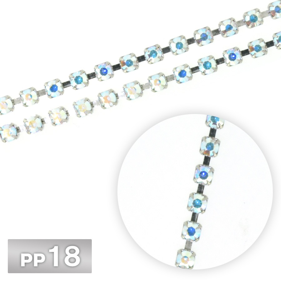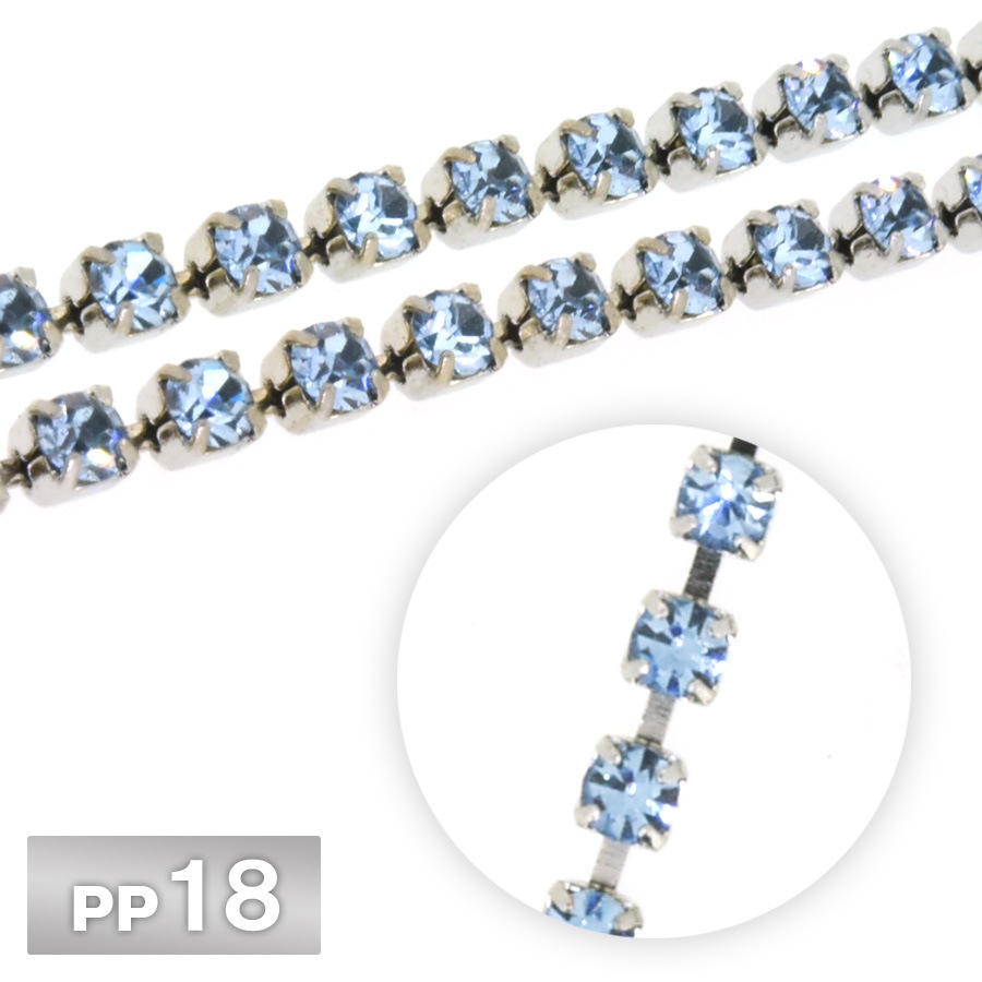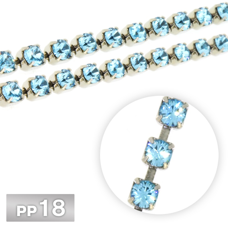 ラインストーン チェーン PP18 10cm/1m ライトアズレ Rhカラー ロジウム 連爪 デコ ネイル 手芸 パーツ ビジュー