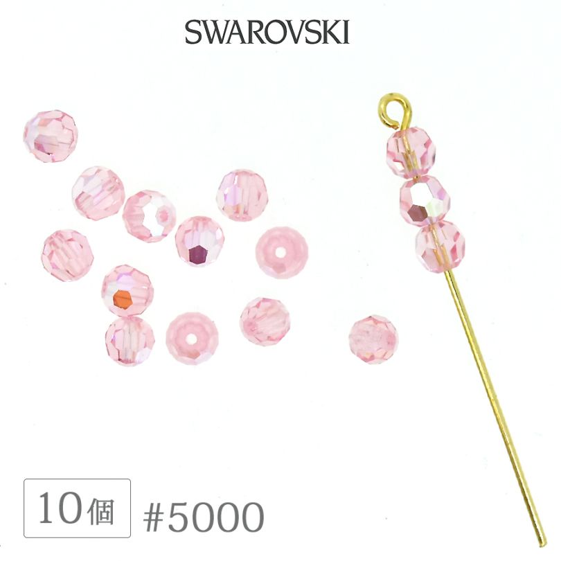 スワロフスキー クリスタル #5000 ライトローズAB オーロラ加工 4mm 10個 SWAROVSKI ラウンド ダイヤカット...
