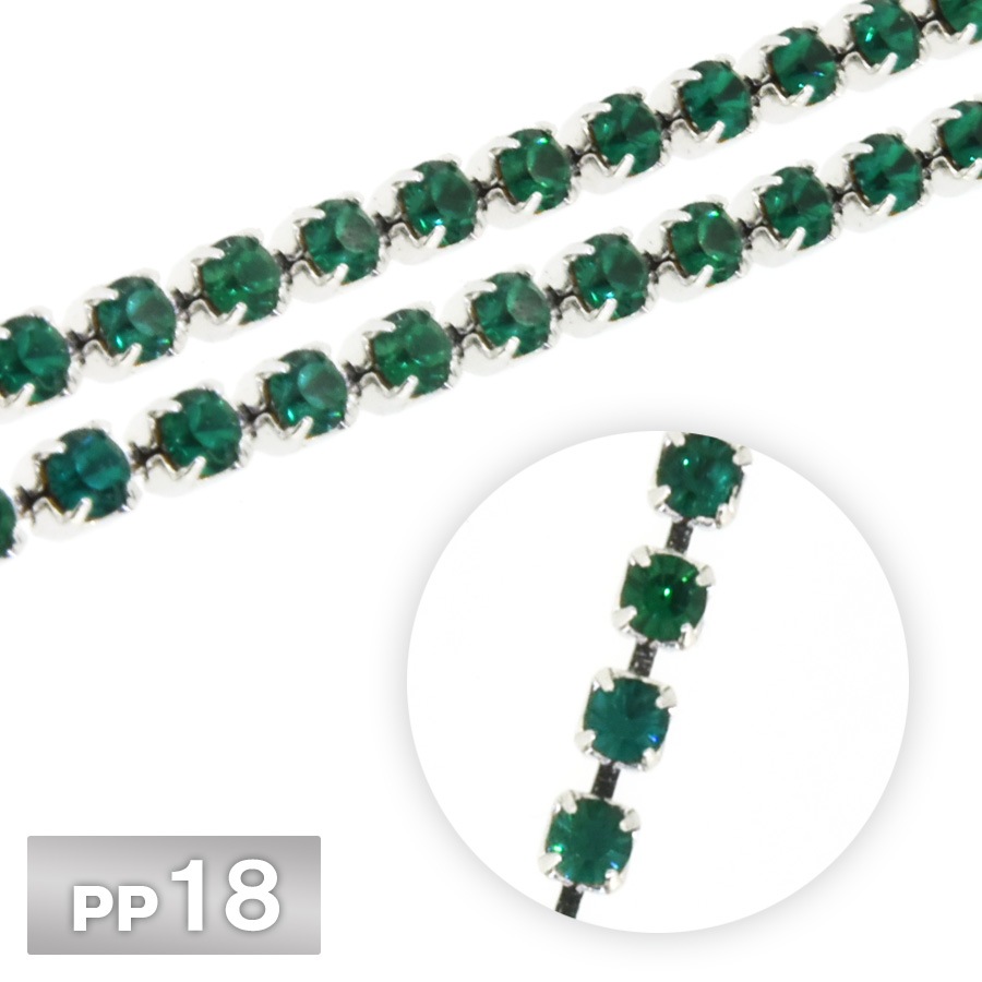 ラインストーン チェーン PP18 10cm/1m エメラルド Rhカラー ロジウム 連爪 デコ ネイル 手芸 パーツ ビジュー