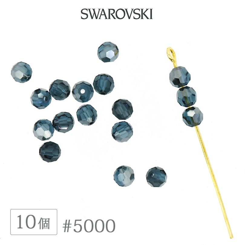 スワロフスキー クリスタル #5000 モンタナ 4mm 10個 SWAROVSKI ラウンド ダイヤカット ガラス ビーズ デコ...