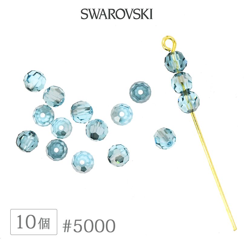 スワロフスキー クリスタル #5000 アクアマリン 4mm 10個 SWAROVSKI ラウンド ダイヤカット ガラス ビーズ ...