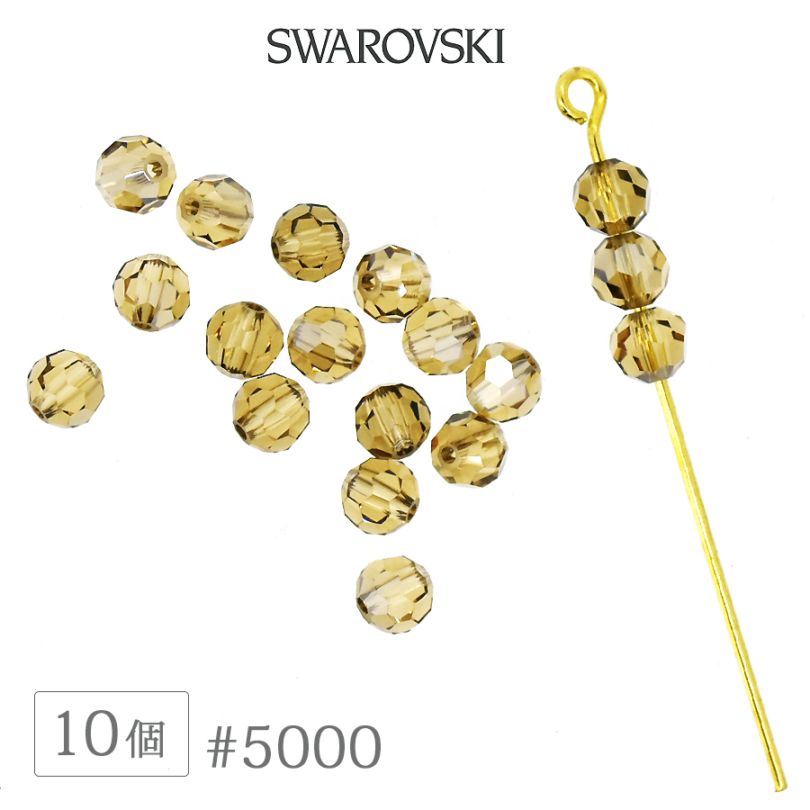 スワロフスキー クリスタル #5000 ライトコロラドトパーズ 4mm 10個 SWAROVSKI ラウンド ダイヤカット ガラス...