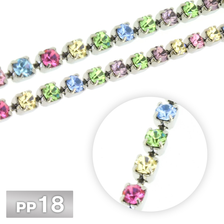 ラインストーン チェーン PP18 10cm/1m ライトマルチ Rhカラー ロジウム 連爪 デコ ネイル 手芸 パーツ ビジュー