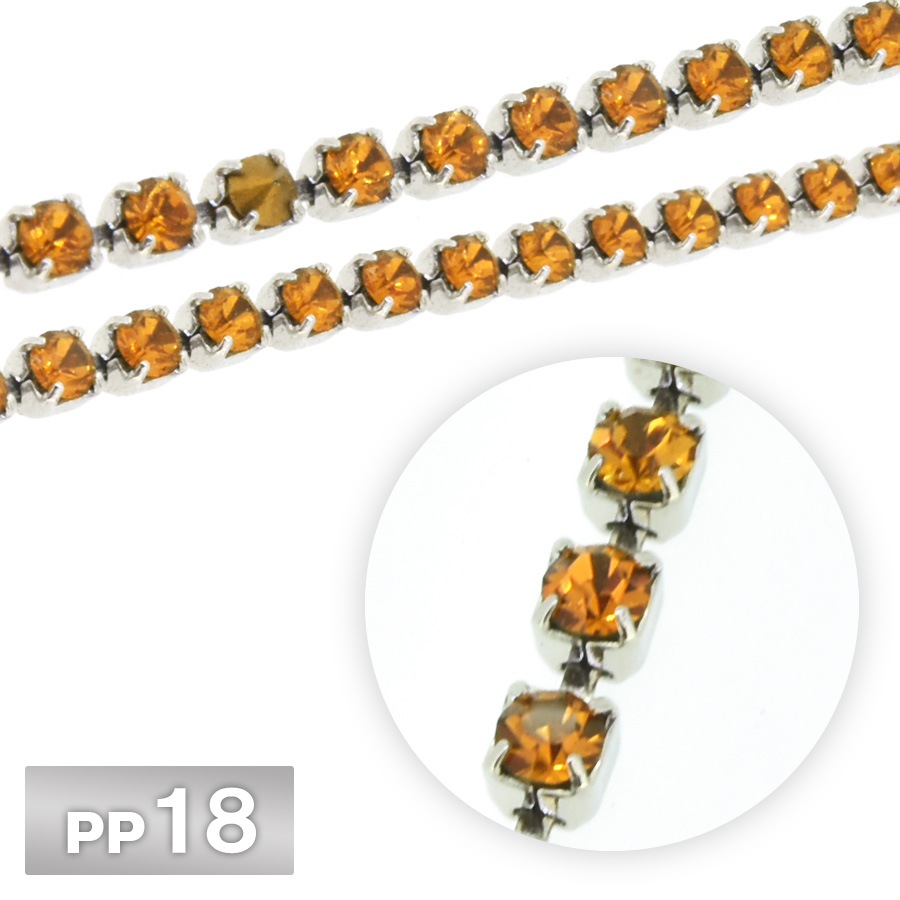 ラインストーン チェーン PP18 10cm/1m トパーズ Rhカラー ロジウム 連爪 デコ ネイル 手芸 パーツ ビジュー