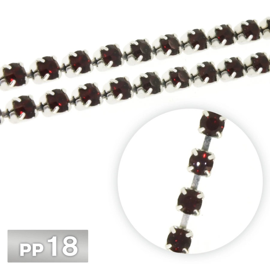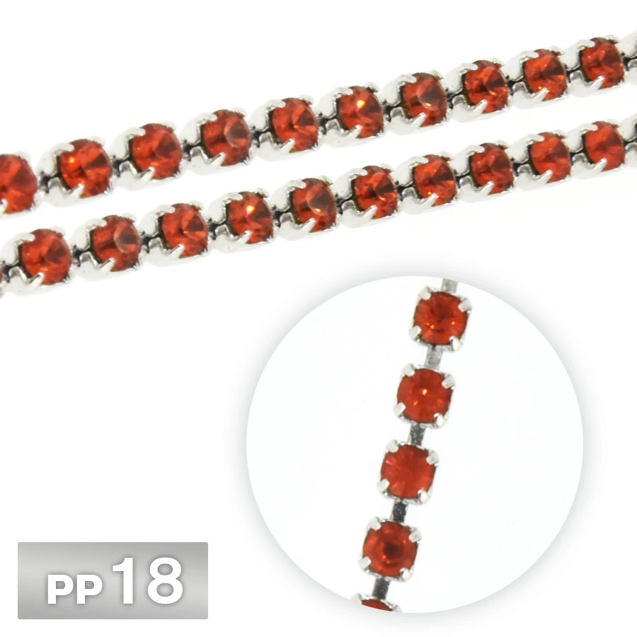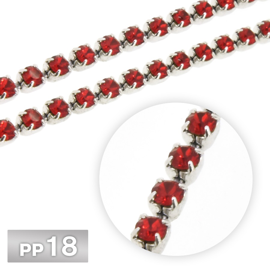 ラインストーン チェーン PP18 10cm/1m インディアンレッド Rhカラー ロジウム 連爪 デコ ネイル 手芸 パーツ ビ...